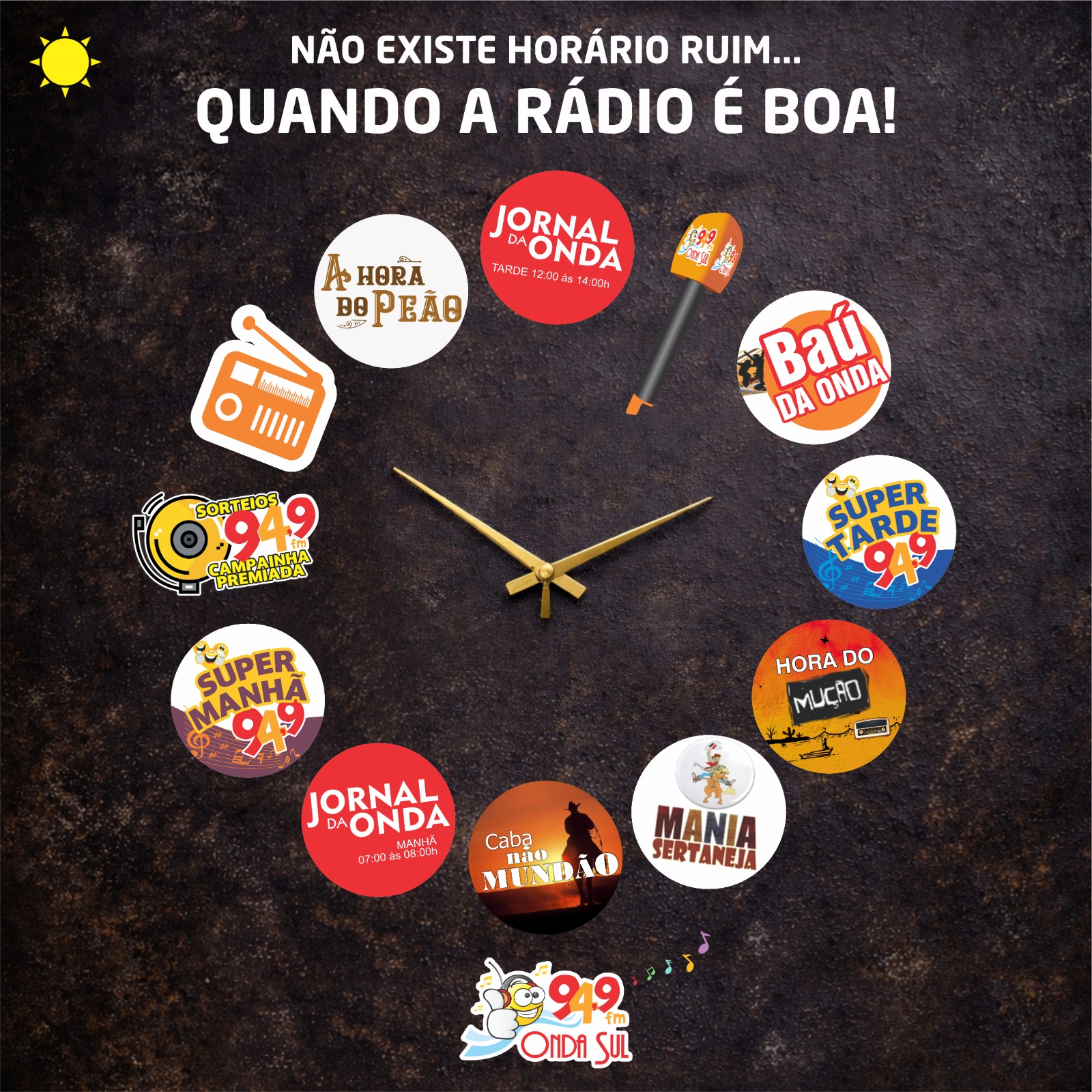 > Durante o dia – a melhor programação no seu rádio a partir das 05:00h da manhã ! ( ONDA SUL FM 94,9 )