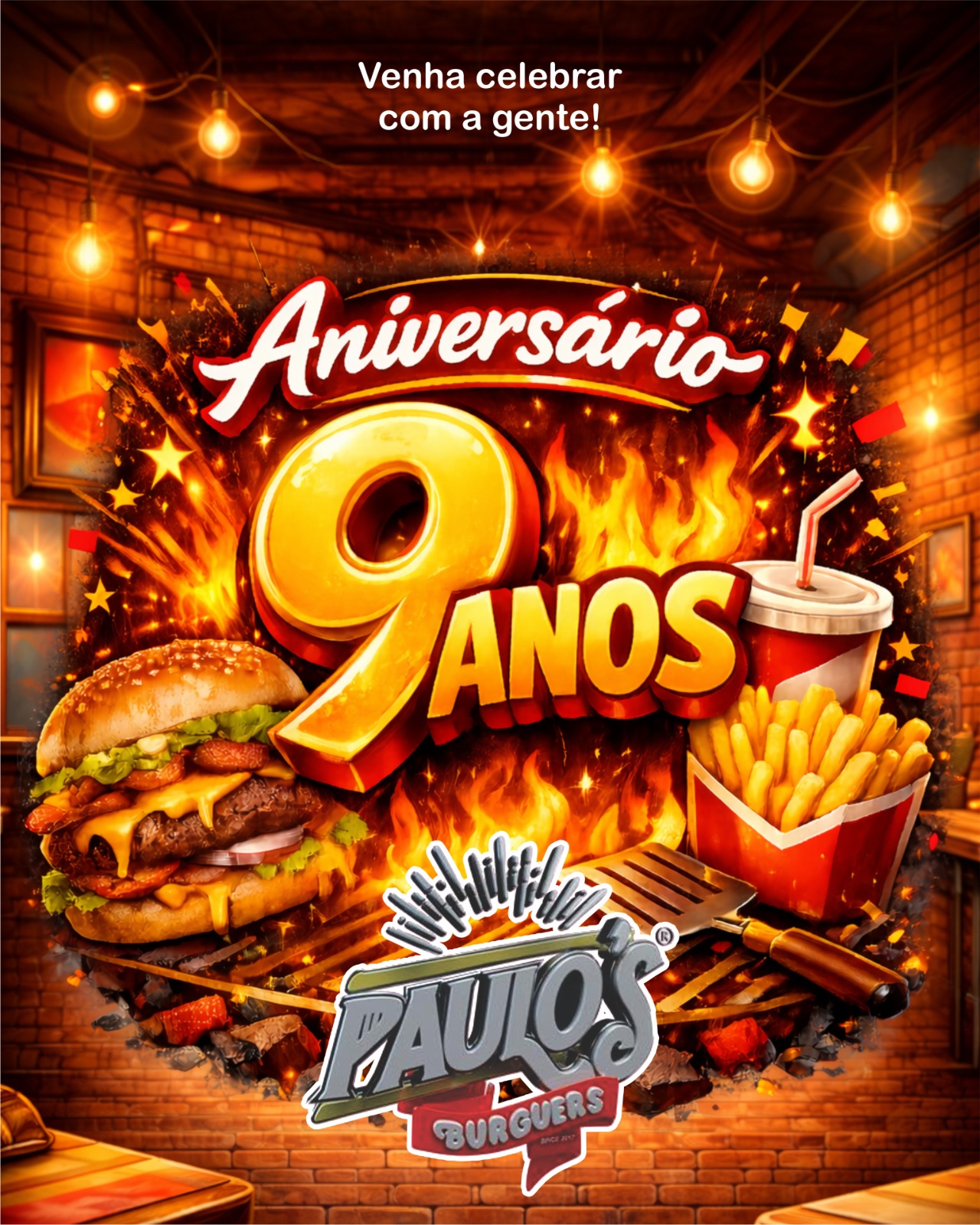 Aniversário 9 anos PAULO'S BURGUERS, uhúúúúúúú!!! ( Venha comemorar com a gente! )