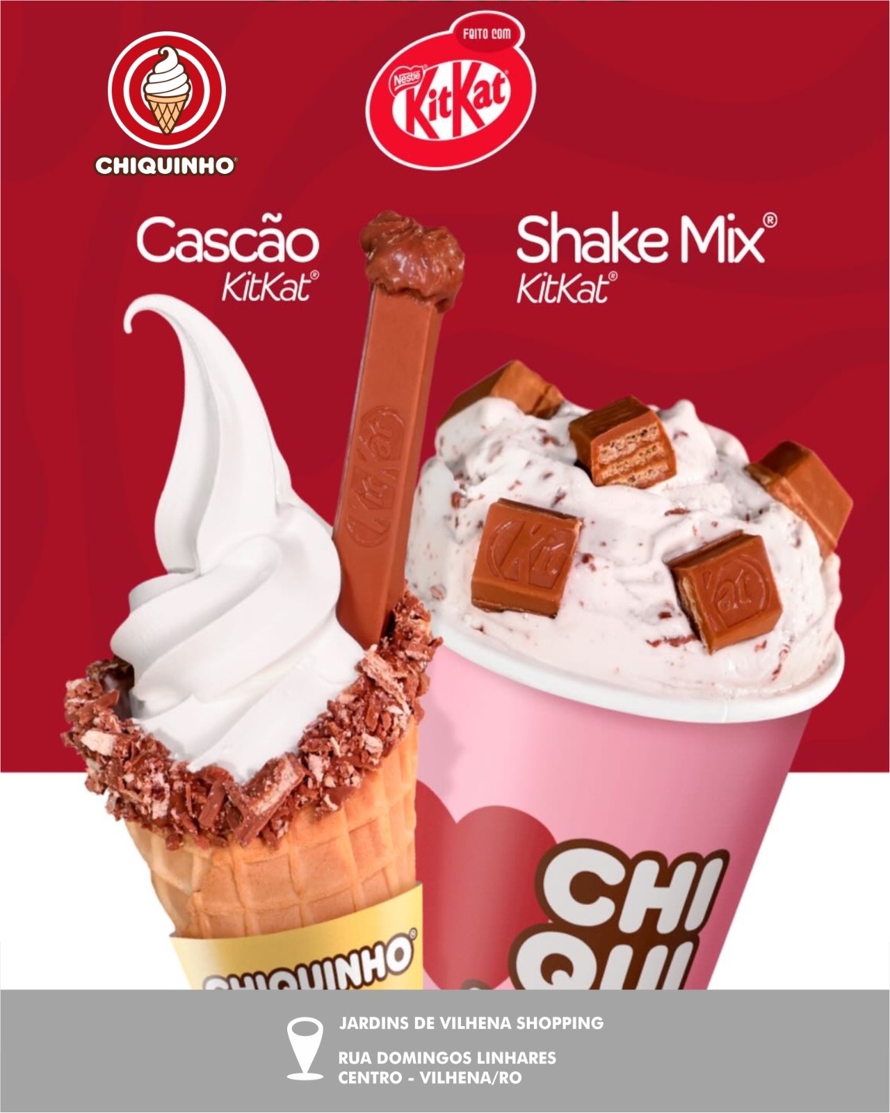 Também pede um DELICIOSO CHIQUINHO, e feito com KitKat, que maravilha! CASCÃO ou SHAKE MIX.