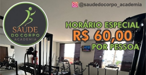 Promoção na “SAÚDE DO CORPO ACADEMIA” R$ 60,00 a mensalidade (corra aproveitar)!