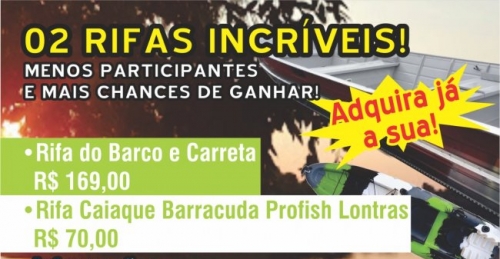 O ARMAZÉM DO PESCADOR está fazendo 02 rifas incríveis (Barco e Carreta/Caiaque Barracuda)