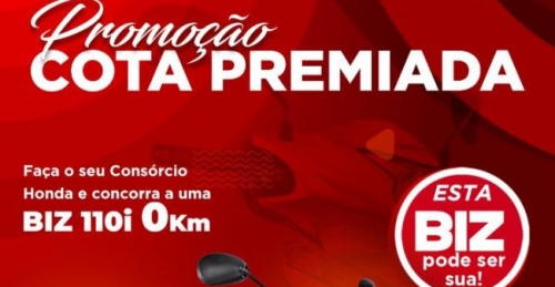 Faça um CONSÓRCIO HONDA na CANOPUS MOTOS e concorra a 01 Biz 110i 0 Km (PROMOÇÃO COTA PREMIADA)