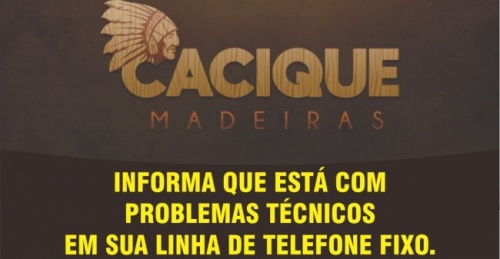 CACIQUE MADEIRAS informa que está com problemas em sua linha de telefone fixo (para ligações ou whats utilizar: 9.8484–5197 ou via whatsapp: 3321–3002)
