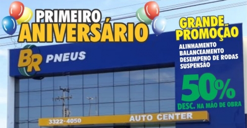 GRANDE "PROMOÇÃO DE 1º ANIVERSÁRIO" BR PNEUS – nesta sexta–feira 02/10 com 50% desconto!